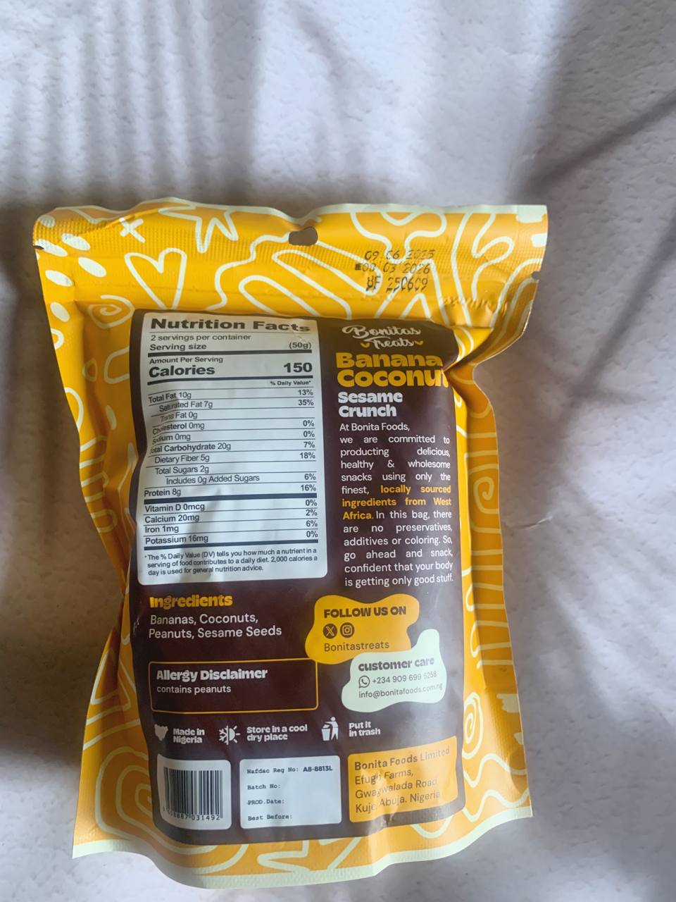 Allergen: peanuts, sesame seeds